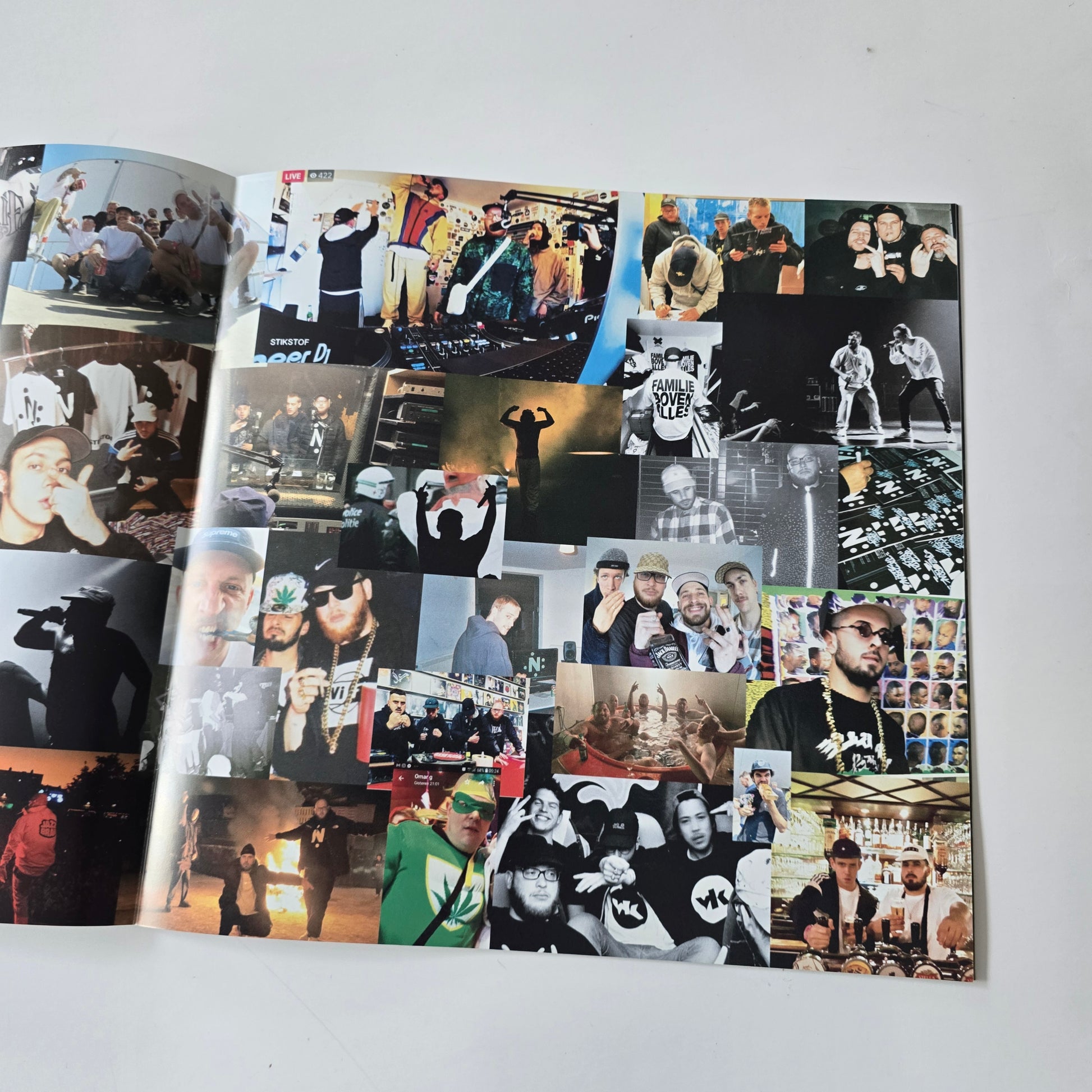 NAAST DE VINYL KOMT DEZE BOX OOK MET EEN 40 PAGINA'S TELLEND FOTOBOEK.